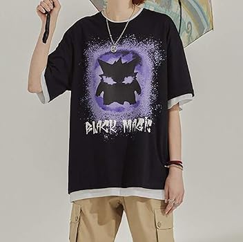 Amazon 韓国 ファッション アニメ tシャツ メンズ ゲンギ 英字 プリント ゆったり 原宿系 トップス ストリート系 半袖 シャツ カットソー 男女兼用 大きいサイズ Tシャツ カットソー 通販