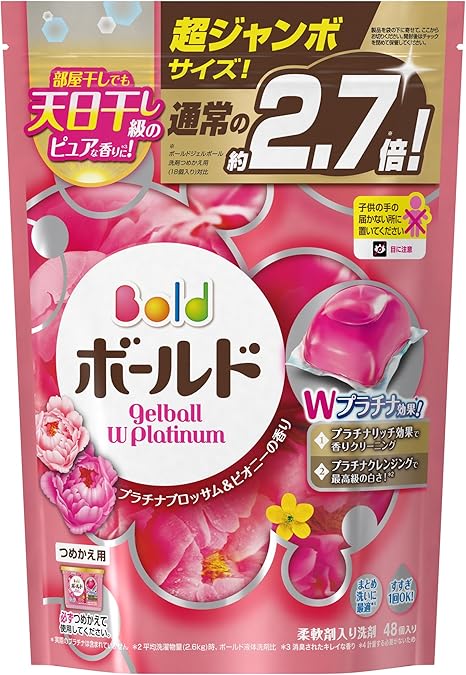 Amazon ボールド 洗濯洗剤 ジェルボールwプラチナ プラチナブロッサム ピオニーの香り 詰め替え 超ジャンボサイズ 940g 48個入 ボールド 液体洗剤