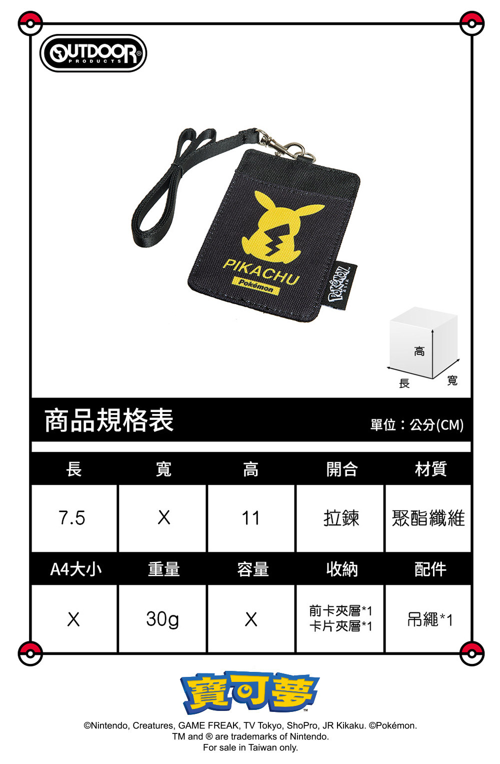 Outdoor Pokemon 寶可夢聯名款潮黑皮卡丘票卡證件套 黑色odgob15bk Bag To You百達遊