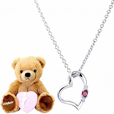 Amazon シアーズ Sears 天然ダイヤ ハート ネックレス レディース テディベア ぬいぐるみセット 1月 ガーネット ブラウンベア 1491 Tdt 01 B1 ネックレス 通販