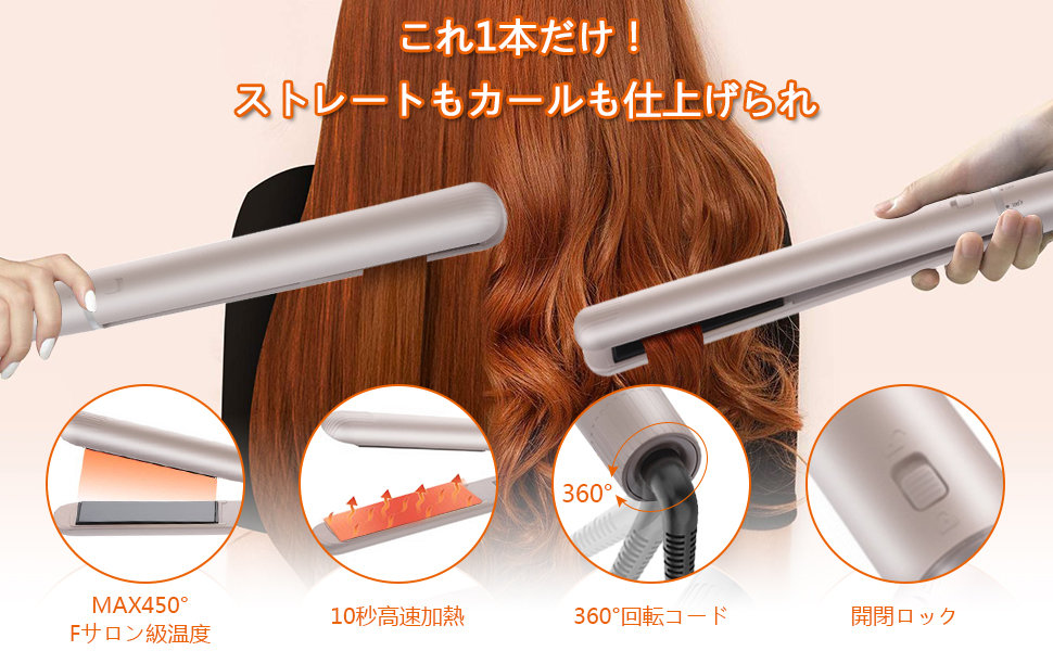 ヘアアイロン ストレートアイロン カールアイロン 2way セラミックアイロン 海外対応 配送員設置送料無料 プロ仕様 マイナスイオン 急速加熱 Led液晶温度表示 メンズ兼用 5段階の温度調整 コード360 回転可能 開閉ロック機能 プレゼント バレンタインデー