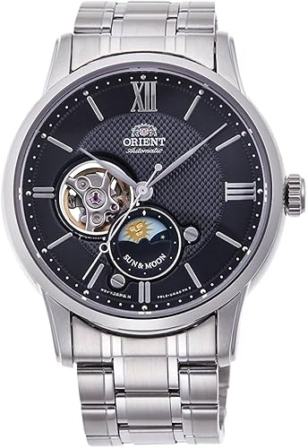 Amazon Com Orient Sun Moon Open Heart Automatic Steel Watch Black As0002b Watches