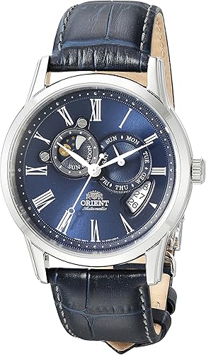 Amazon Com Orient Men S Fet0t004d0 Classic Sun And Moon Version 2 Analog Automatic Blue Watch Watches